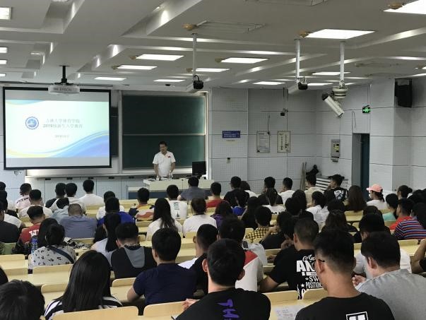 为使新生尽快适应新的学习、生活环境,实现由高中生到大学生的角色转变,8月27日下午,德赢winac米兰在逸夫教学楼第一阶梯教室召开了新生入学专题教育。德赢winac米兰党委书记逄锦彩、党委副书记兼副院长田进、学生工作办公室主任王赫谊、辅导员宫勖能及2019级全体新生参加了本次活动。会上,党委书记逄锦彩讲话。
