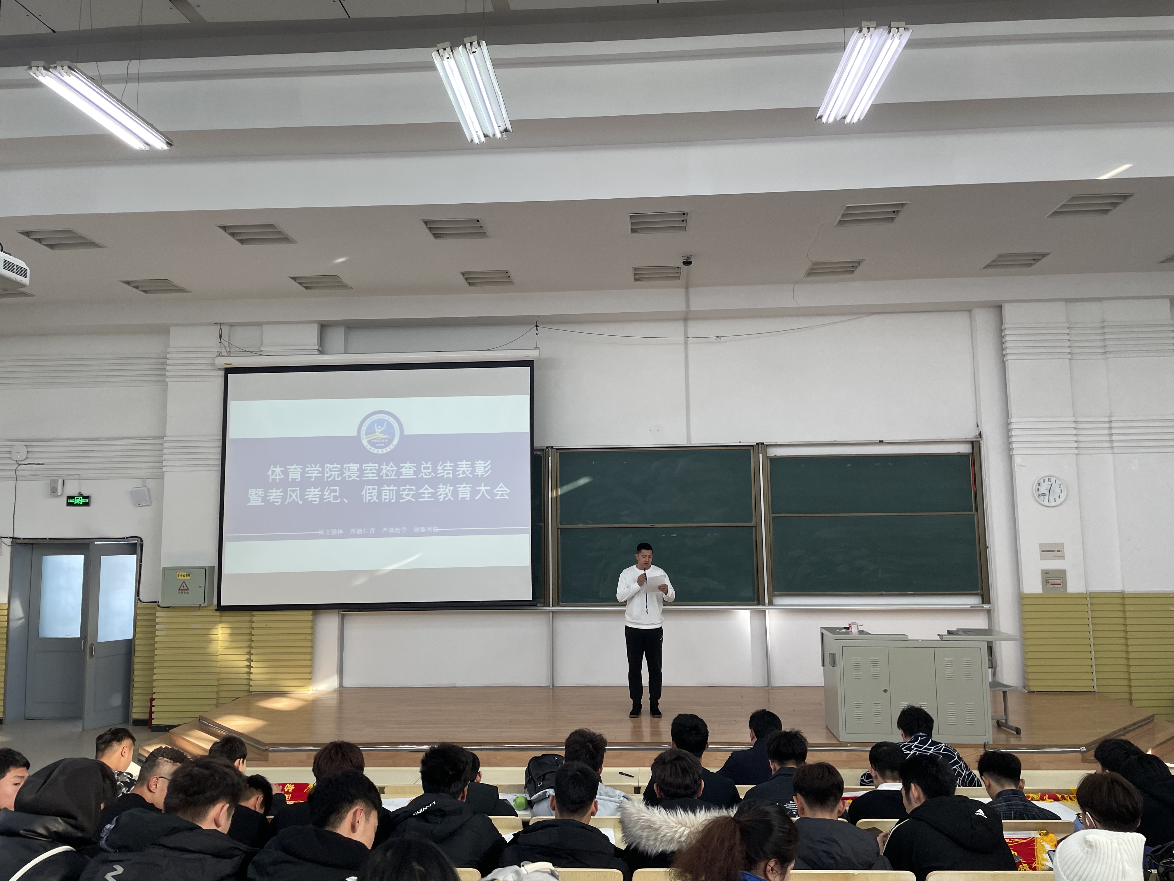 2020年12月17日中午,德赢winac米兰在逸夫楼第十阶梯教室召开本学期寝室检查总结表彰暨考风考纪、假前安全教育大会。学院党委副书记兼副院长田进、全体辅导员和全院本科生参加本次大会。