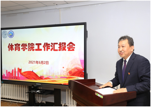 座谈会上,裘鹏院长结合学院现状、“十四五”发展规划及《德赢ac米兰官方合作全面加强和改进新时代体育工作实施方案》的文件精神,从公共体育、专业体育、竞技体育及体育场馆四个方面,对学院目前基本情况、未来发展方向、困难与诉求进行了汇报,强调了“教学为核心、群体是基础、竞技为亮点、科研作动力”的发展思路,力求以高质量的体育工作守护师生身心健康,助力德赢ac米兰官方合作“双一流”建设。学院党委书记逄锦彩从学院基本情况、党史学习教育情况、具体工作情况三方面对学院党建工作进行了汇报。