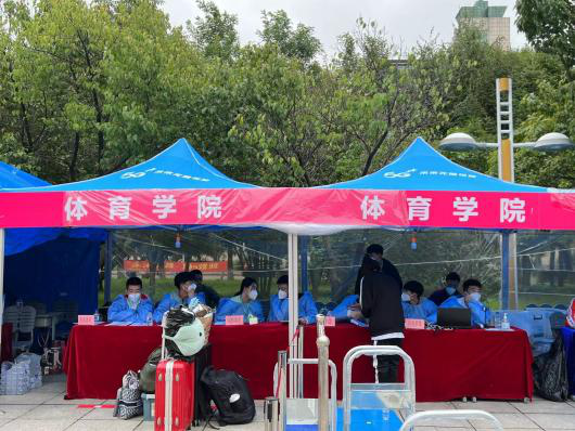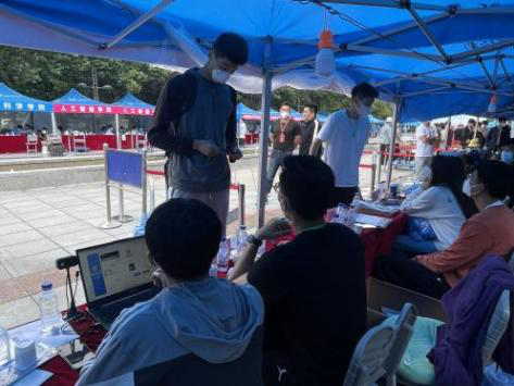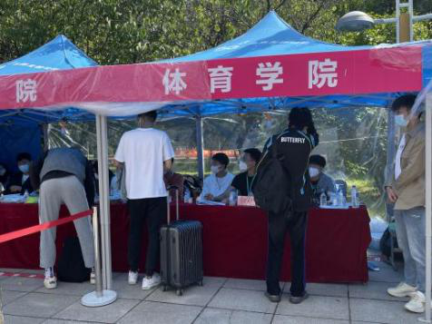 8月27日上午7点,迎新工作开始,志愿者们负责检查新生报到所需录取通知书、“身份验证”、进行“图像比对”、检查“个人防疫行程卡”、收取高中学生档案及团关系资料,并发放防疫“健康包”、新生材料袋。院长裘鹏亲自到场指导迎新工作。