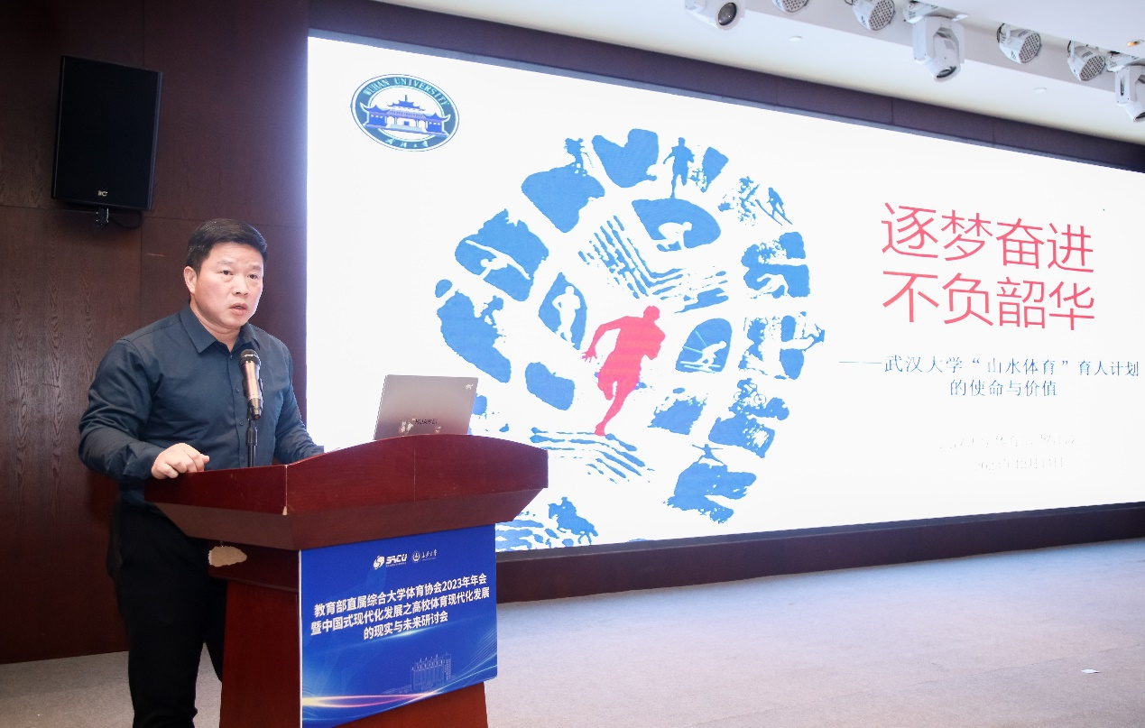 武汉大学体育部主任罗江波以《逐梦奋进,不负韶华——武汉大学“山水体育”育人计划的使命与价值》为主题进行经验交流。经验交流会由西安电子科技大学体育部副主任高鹏飞主持。罗江波教授介绍了武大特色“山水体育”课程体系与教育模式,以及“山水体育”育人使命与价值,并从工作思路、工作目标、保障机制和工作举措等维度分享了武大体育未来的工作计划与方向,为各高校开拓体育教育工作新思路,塑造特色体育教育体系提出了许多富有建设性的经验借鉴与路径参考。