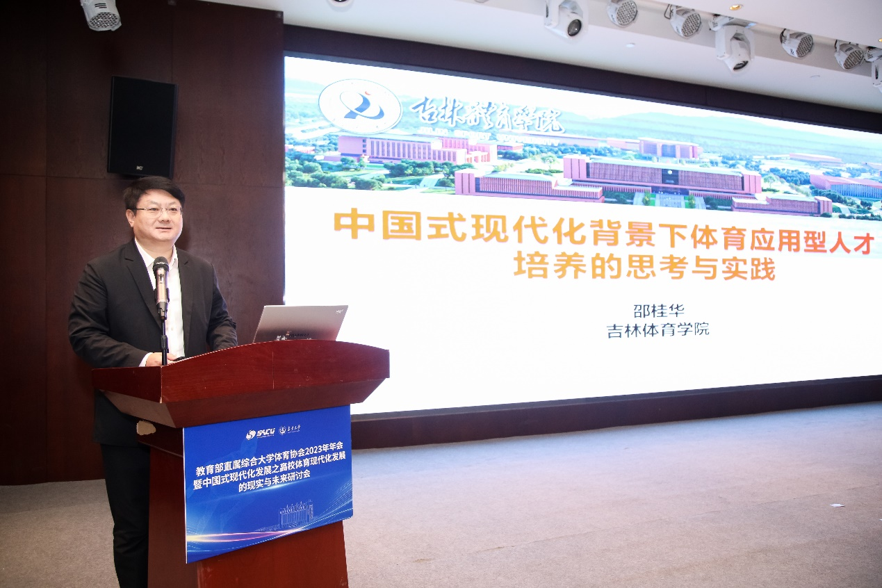 开幕式后,吉林德赢winac米兰校长邵桂华作了《中国式现代化背景下体育应用型人才培养的思考与实践》专题讲座。讲座由兰州大学体育教研部主任冯涛主持。邵桂华教授基于中国式现代化背景,梳理总结了中国现代化发展的历程、特征和中心任务等,阐述了中国式现代化建设对体育应用型人才培养的新需求,并从高校体育人才培养特征、培养方向、发展构想、课程改革、实践性教学、管理制度体系、开放式办学、校企合作和现代产业学院建设等方面对体育应用型人才培养实践进行了深入探讨,为新时代高校体育人才培养提出了许多具有前瞻性和建设性的思考和建议。