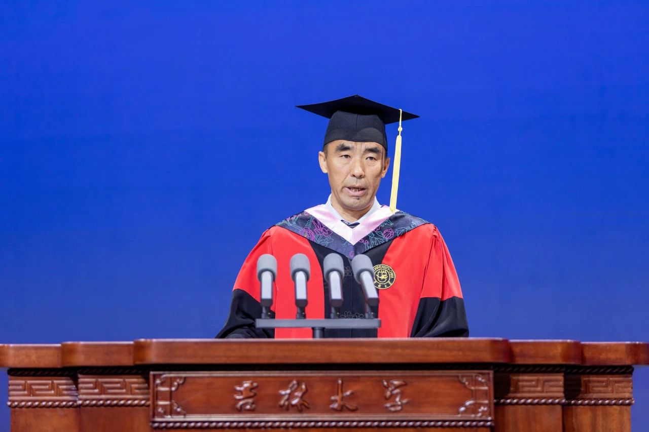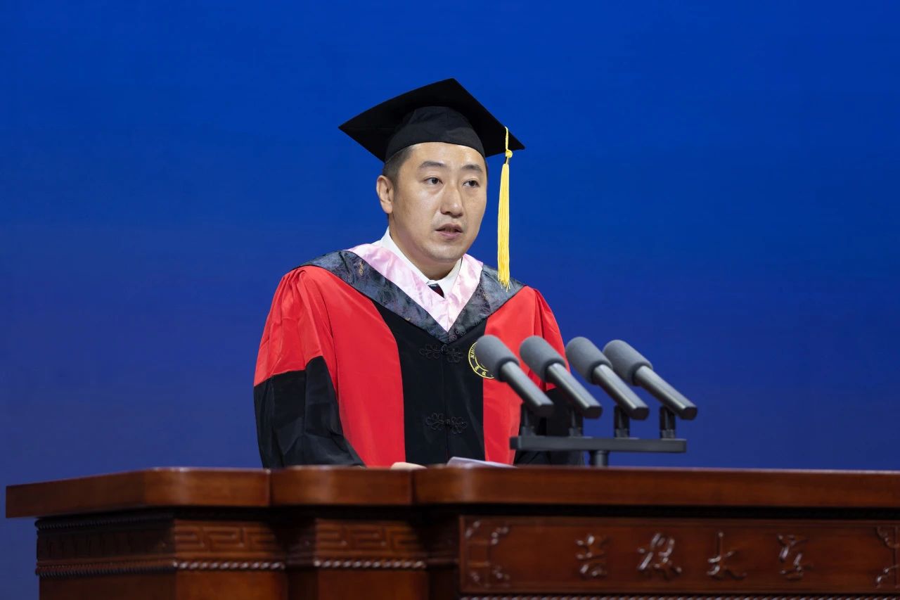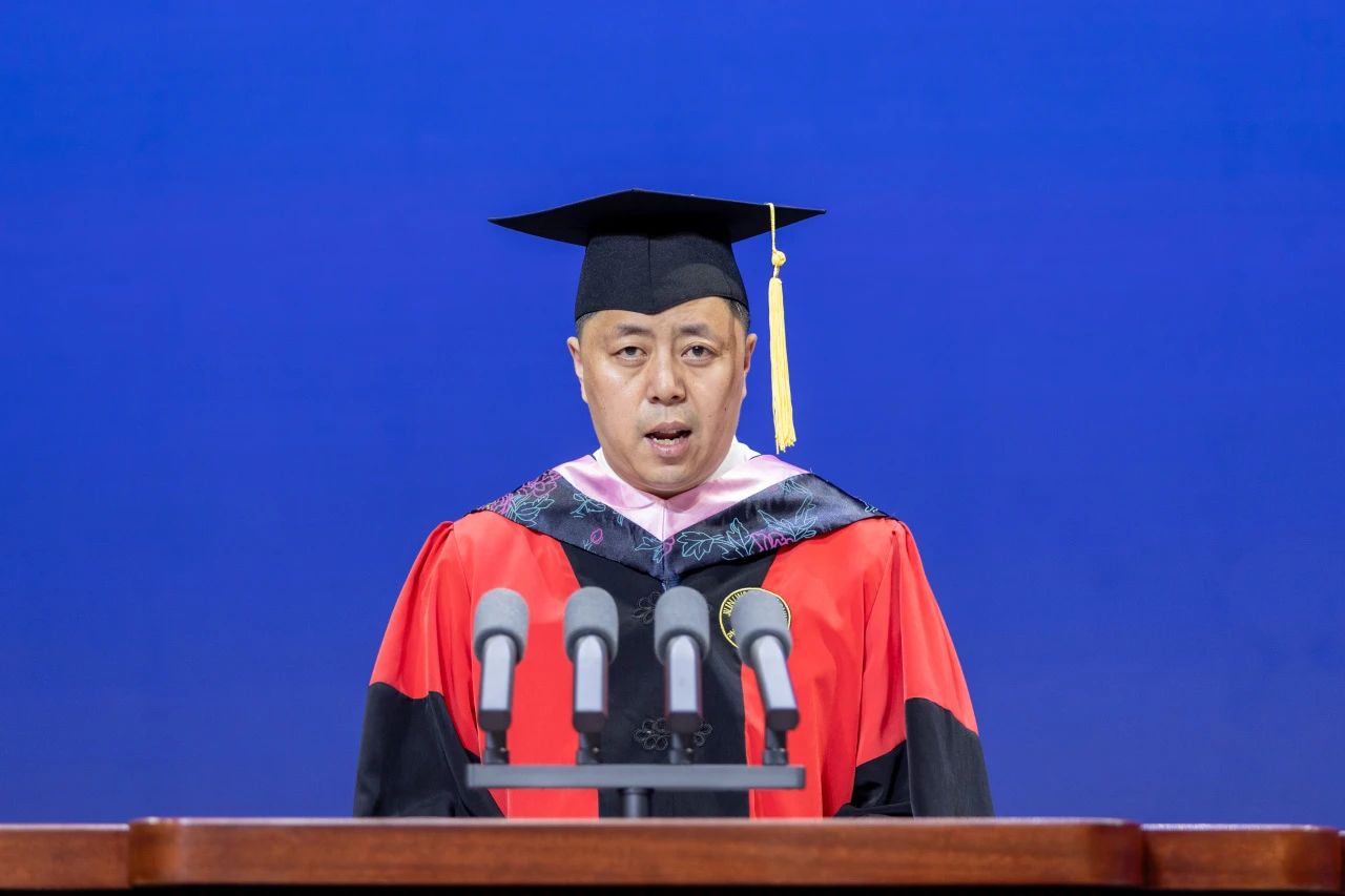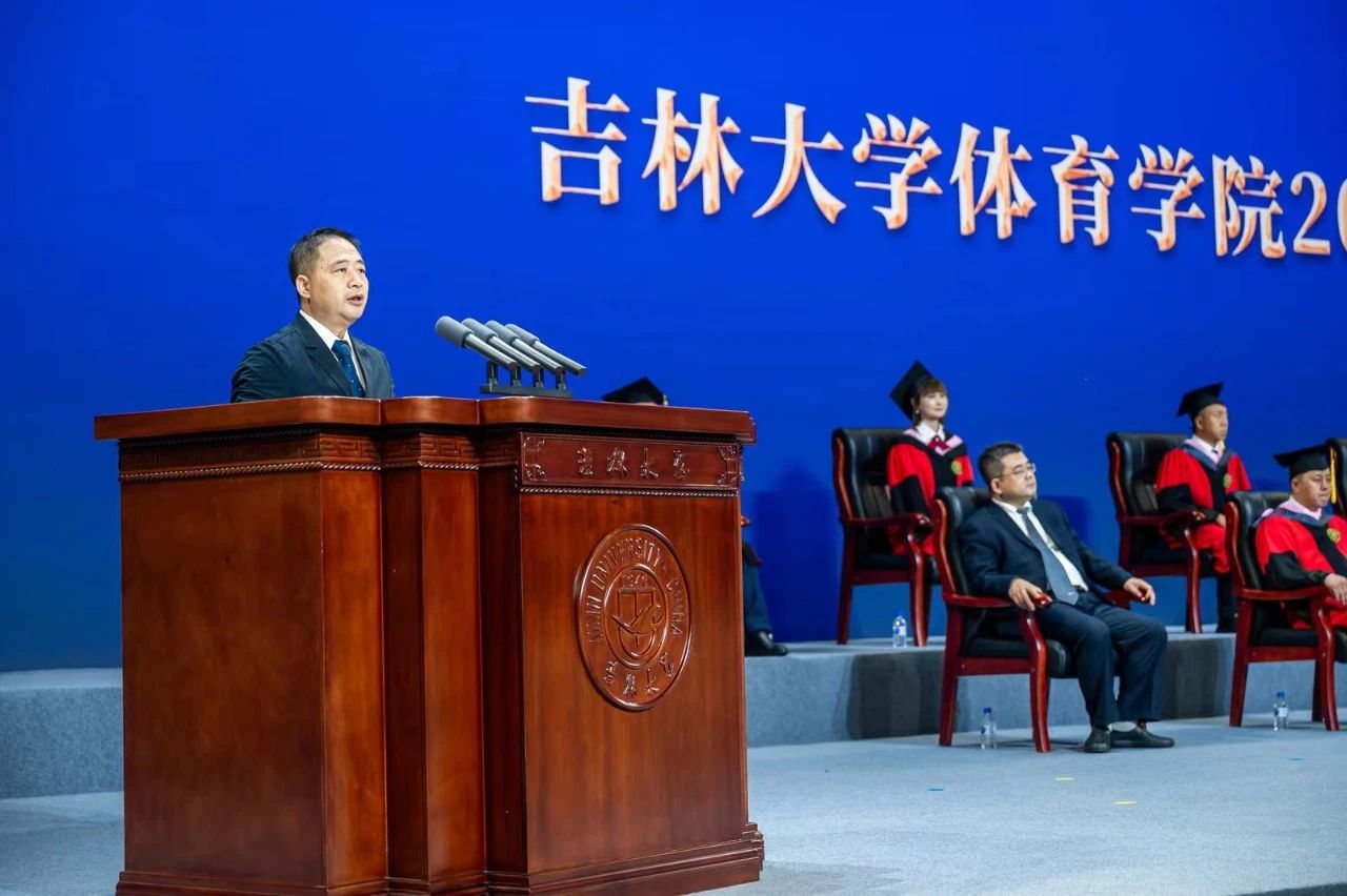 裘鹏院长以“坚守体育价值,不负时代重托”为题寄语全体毕业生。首先,他代表学院向全体毕业生表达了最热烈的祝贺,向全体教职工表达了真挚的感谢,向学生家长表达了崇高的敬意。接下来,他与毕业生分享体育的“自目的性”价值,“界限”价值,“自由”价值,“低效挑战”价值,“公平”价值,“不确定性”价值,“学习”价值,“卓越”价值,“共同体”价值,“美”的价值等“体育的十大内在价值”。他指出“体育的十大内在价值”是对体育的哲学思考,也是同学们未来人生道路上探索的方向,希望同学们能够从体育中汲取力量和智慧,在生活中实践这些宝贵的价值观,成就更加美好的人生。接下来,他用“奥运三问”的故事激励同学们,自觉肩负强国有我的历史使命,为全面建成社会主义现代化体育强国的宏伟目标努力奋斗。最后,他祝福毕业生“不以山海为远,初心如磐;不以风雨为惧,挺膺担当;不以日月为限,再谱华章。”