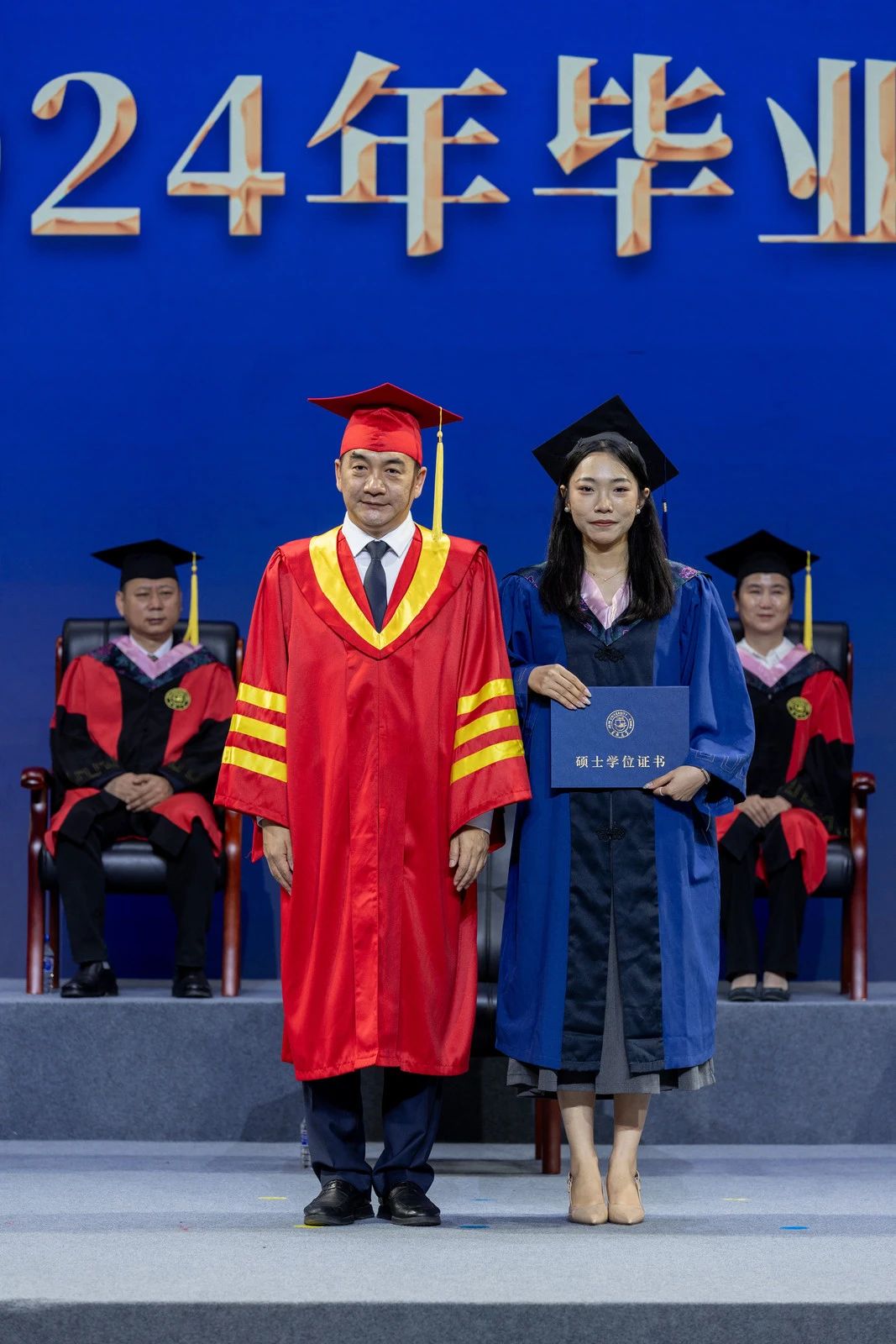 典礼伴随着奏唱国歌仪式拉开序幕。到场的师生们共同观看了毕业纪念视频,回忆起在校园的点滴和足迹。随后,王祥全副院长宣读了《关于授予2024届本科毕业生学士学位的决定》,授予马少敬等105名同学本科学士学位,李廷奎副院长宣读了《关于授予2024届毕业生硕士学位的决定》,授予毕文俊等23名同学研究生硕士学位。院长裘鹏为128名应届毕业生波动流苏,郭玉莲副院长和邹晓峰副院长分别为本科毕业生和硕士毕业生颁发学位证书。
