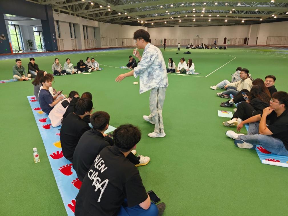 活动在欢快的破冰环节中拉开帷幕。通过随机分组和趣味自我介绍,来自不同学院的同学们迅速打破隔阂,现场洋溢着轻松愉快的氛围。本次联合活动精心设计了三项趣味运动项目,将竞技与娱乐完美融合。首项团队挑战,队员们分别将手中的羽箭投至目标区域,精准的投术与团队默契在此刻交相辉映。随后的"极限接力"环节将活动推向高潮,该项目巧妙融合了挤爆气球和趣味过垫子。参赛选手们以创意十足的姿势穿越垫子,伴随着场边队友的加油声、欢笑声此起彼伏。在最后的"战术踩气球"环节中,各队上演了一场智慧与激情的对决。有的队伍采取结盟策略,有的选择主动突围,体育馆内此起彼伏的欢呼声与气球爆破声交织成青春的乐章。
