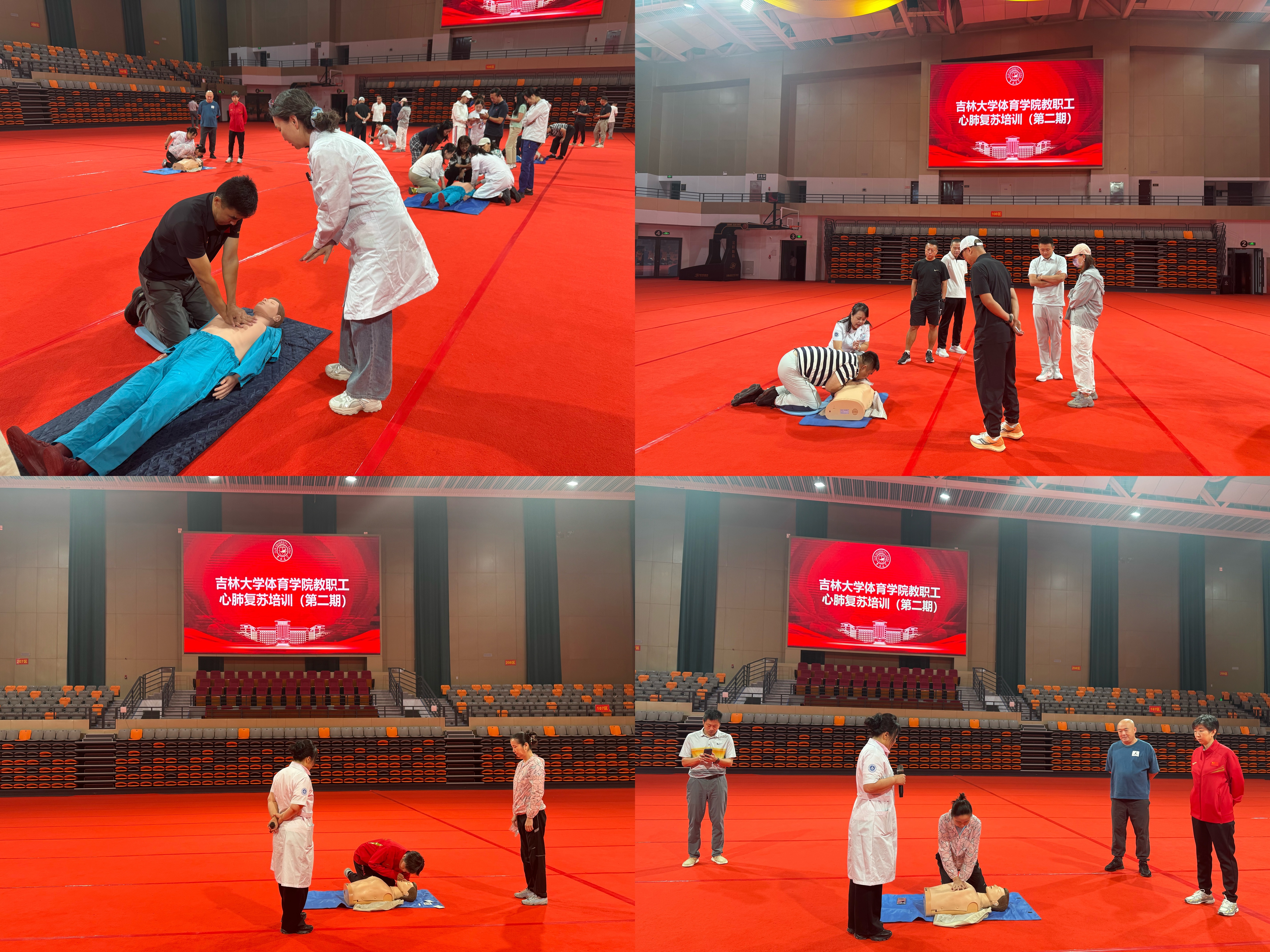 在实践操作环节,全体教职人员分成六组进行分组练习,每组由一位校医院的急救人员手把手指导,及时纠正老师们操作中的不足,确保每一位参训教师都能真正掌握这项急救技能。
