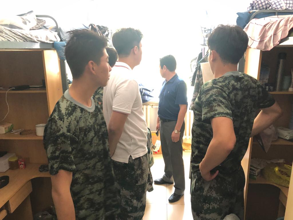 为深入贯彻军训要求,提高学生自我管理意识,按照学院新生入学教育总体安排,9月11日中午,德赢winac米兰党委副书记兼副院长田进、辅导员宫勖能及部分学生干部在军训期间走访检查了新生寝室。
