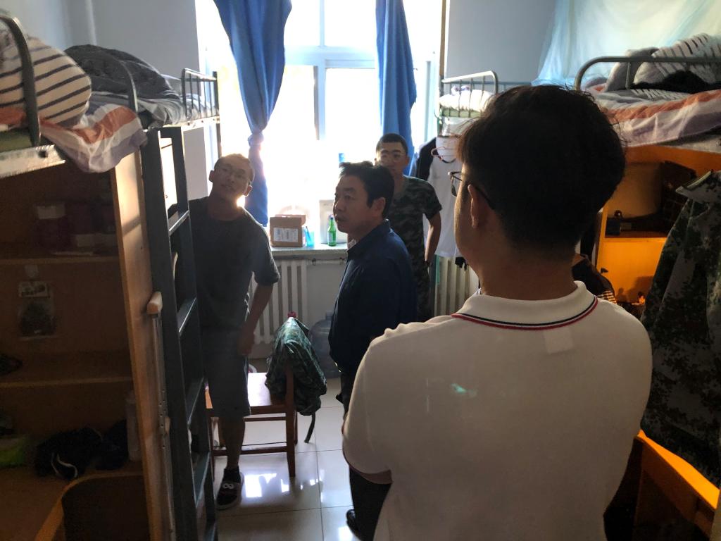 走访过程中,田书记和宫老师悉心询问新生们军训是否习惯,生活上是否遇到困难等问题。田书记还提醒大家平时要坚决杜绝使用违章电器,严排安全隐患,同时要注意个人健康和寝室卫生,室友间要和谐相处,要以军训的内务标准来整理自己的寝室,鼓足精神完成军训期间的任务。并叮嘱大家有任何问题要及时向老师反映,希望大家积极调整状态,将军训的相关要求延伸到以后的学习生活当中去。