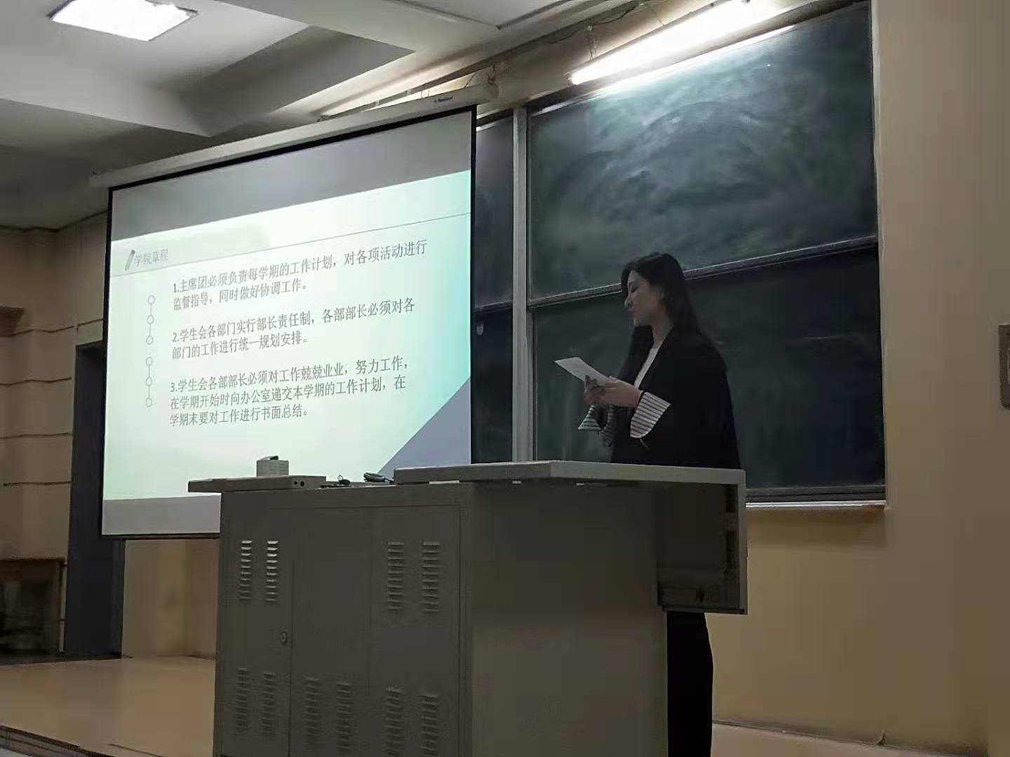 本次大会伴随着庄严的国歌声拉开了序幕。大会伊始,学院上届团学组织负责人对上一年团学工作做了总结述职。接着,田书记为上届学生干部颁发任职证书;宫勖能老师宣读新一届届团学组织学生干部名单;新任学生会秘书长宣读学院团学组织章程。随后,主持人带领新一届团学干部进行就职宣誓。