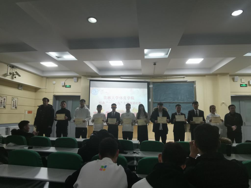 活动伴随着庄严《国歌》拉开帷幕。首先,播放了一段关于一二·九运动的视频,现场所有人员看后心情澎湃,并加深了对这段历史的学习和了解。随后,进入演讲比赛阶段,选手们饱含深情地进行演讲,部分选手在演讲过程中还增加了配乐和视频,都用自己独特的方式声容并茂地表达着自己对祖国的热爱,提醒大家“一二•九”运动的精神需铭记,要有新时代青年的责任担当。所有参赛选手演讲结束,进入统计评分与颁奖环节,在评委们认真负责的评分后比赛的名次也随之公布,获奖人员依次上台领状,并合影留念。最后,田书记对本次活动做了简要总结,强调了开展此类活动的目的和初衷,希望大家了解历史,铭记历史,珍惜当下,奋斗当下。接着,现场全体人员齐唱《我和我的祖国》,活动在庄重而热烈的气氛中圆满结束。