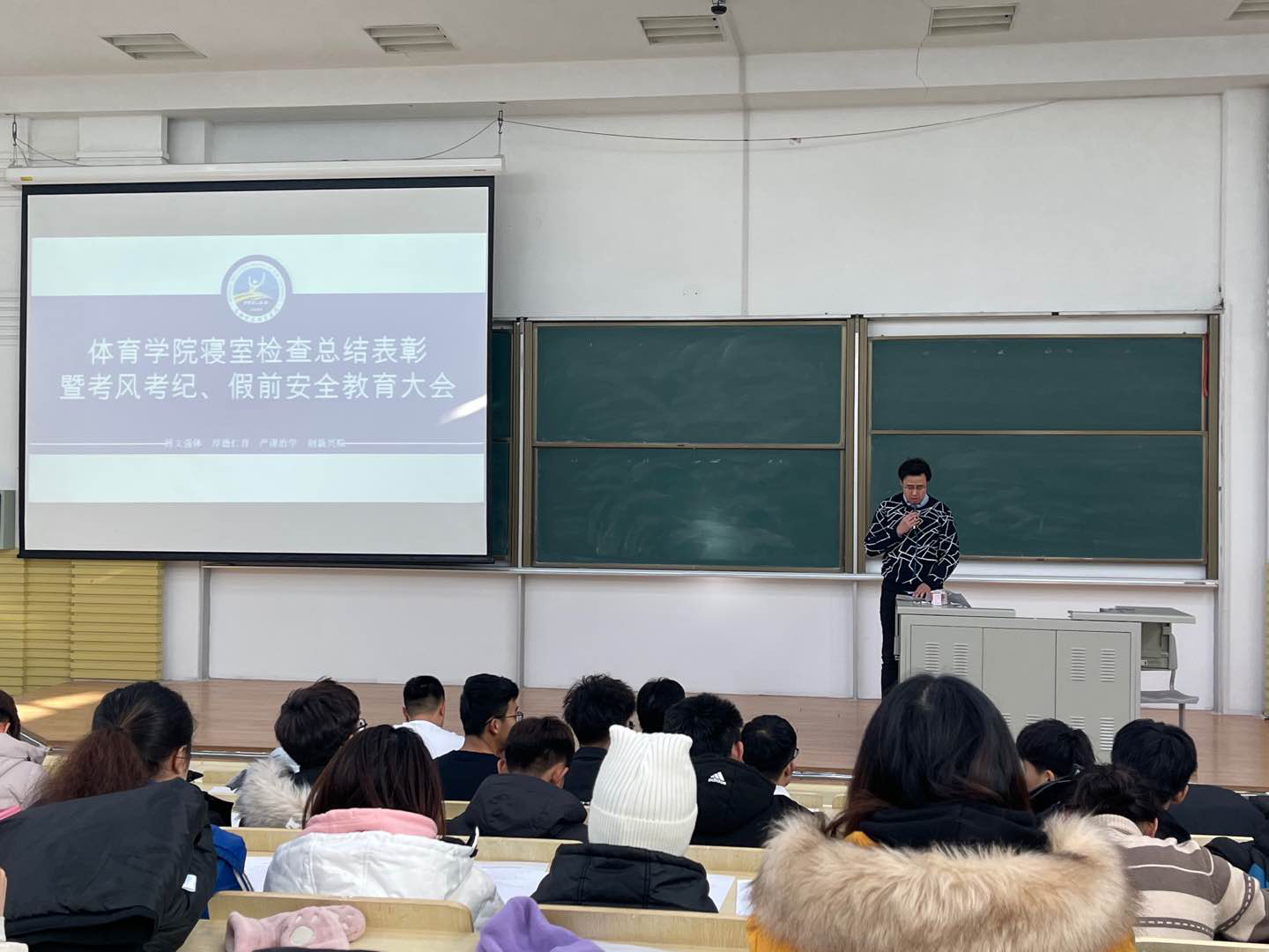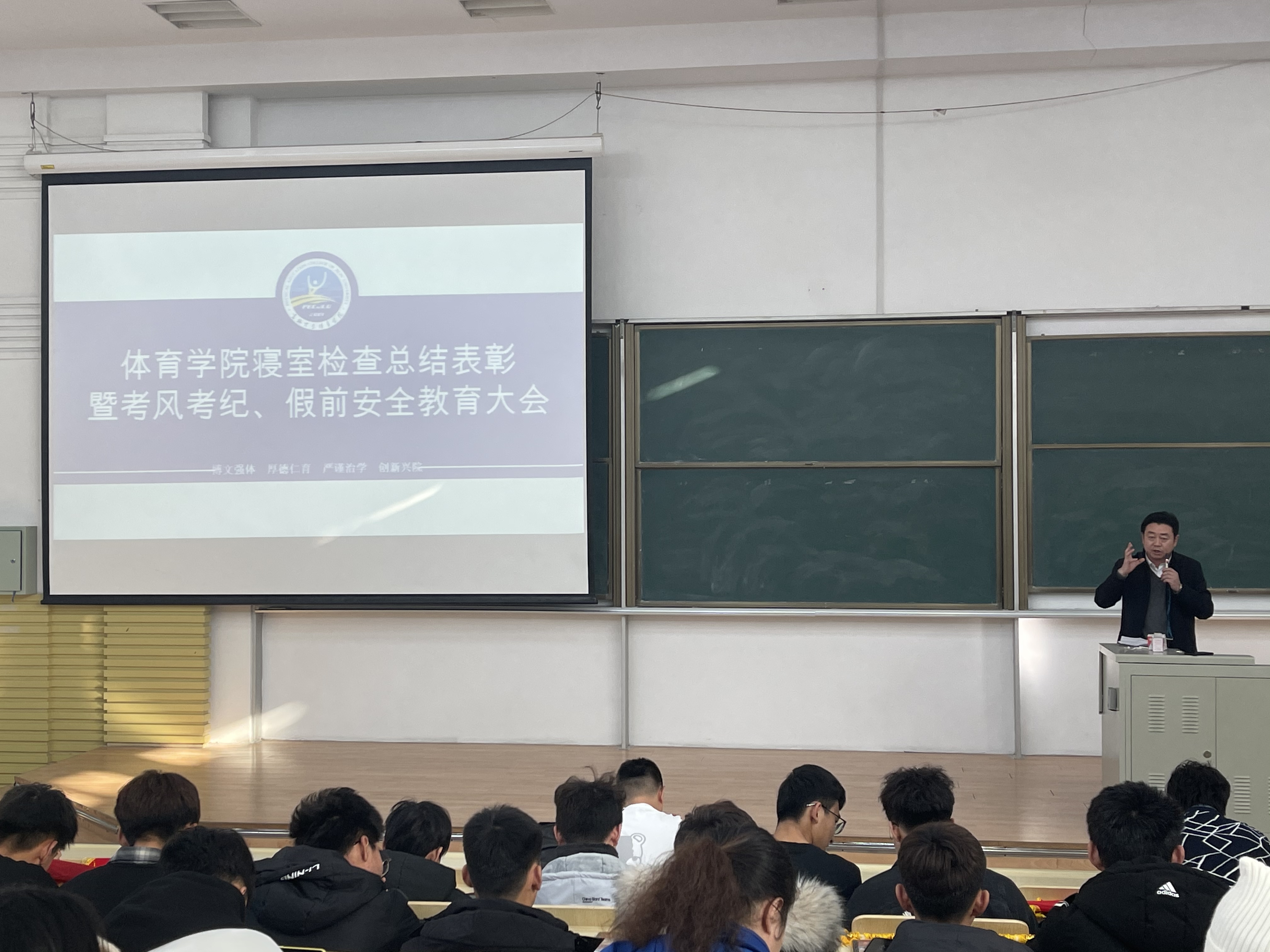 2020年12月17日中午,德赢winac米兰在逸夫楼第十阶梯教室召开本学期寝室检查总结表彰暨考风考纪、假前安全教育大会。学院党委副书记兼副院长田进、全体辅导员和全院本科生参加本次大会。