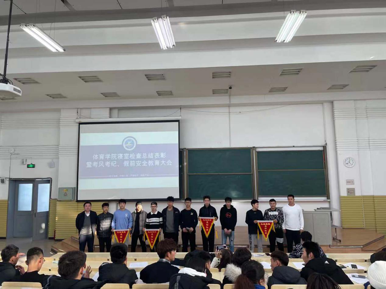 最后,田进副书记做总结讲话。讲话中,田书记对本学期获得先进寝室的同学进行了充分肯定,希望他们再接再厉,继续做同学中的榜样,并呼吁其他寝室向先进寝室学习,营造良好的学习生活氛围。田书记强调,期末考试临近,同学们要积极备考,诚信参考,努力取得优异成绩,并要严格履行“错峰放假”的请销假手续,按时报备,安全文明离校,全程按疫情要求做好个人防护。