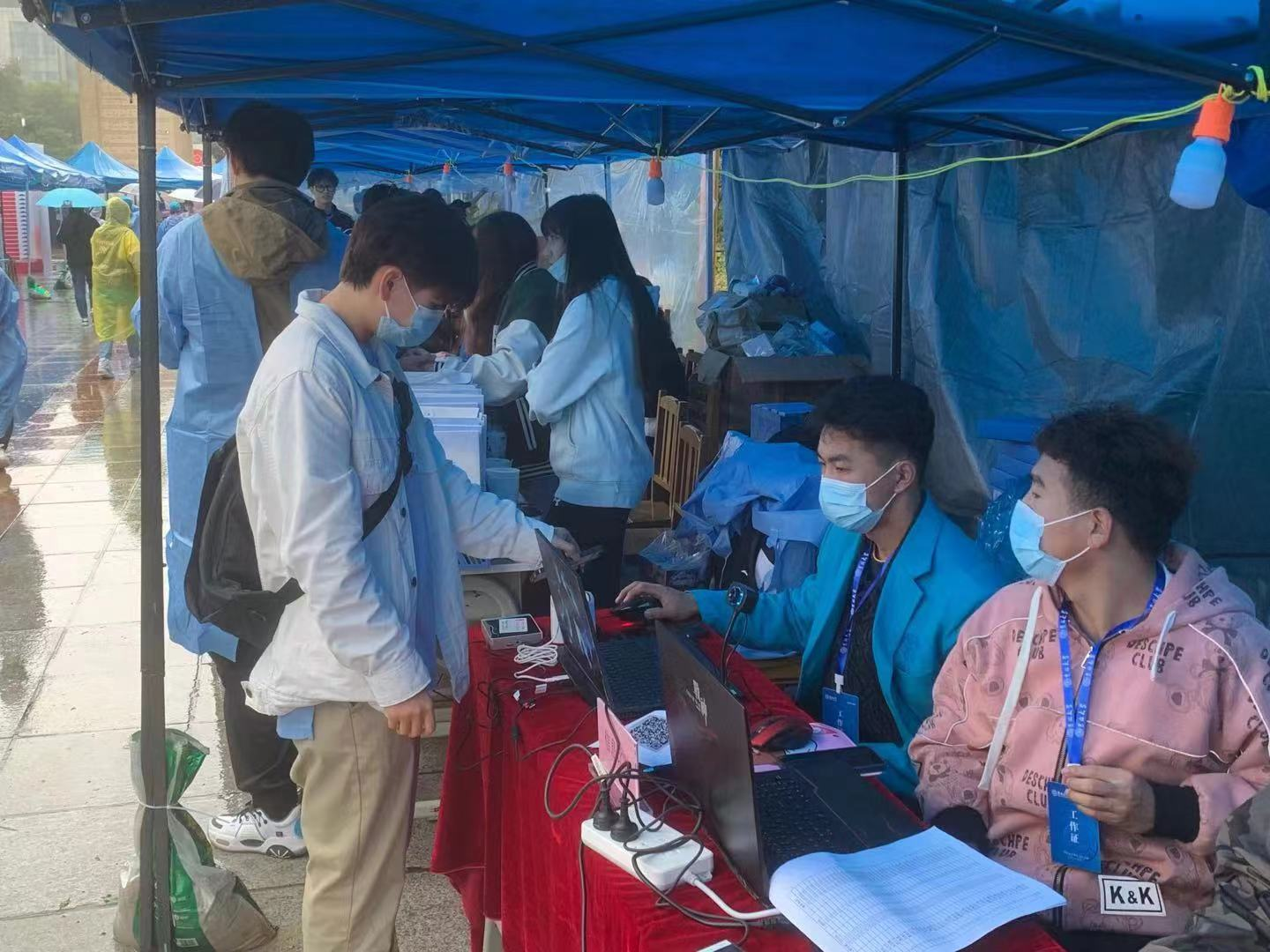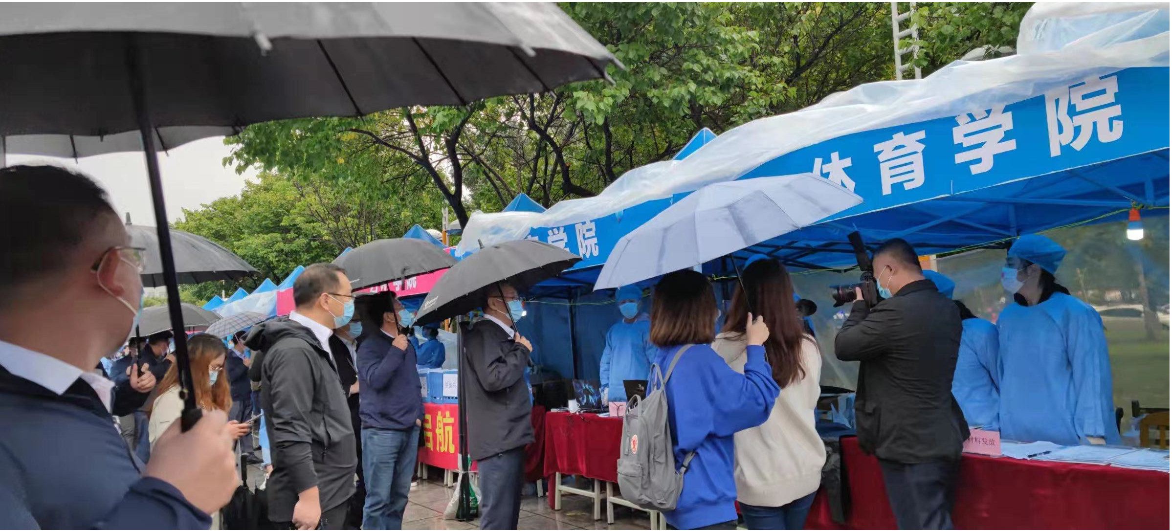 9月22上午七点,迎新工作开始志愿者们负责检查新生报道所需录取通知书核实身份证验证新生身份、检查“个人防疫行程卡”、收取高中学生档案及党、团关系资料,并发放防疫“健康包”、新生材料袋。新生按照防疫要求报到全程佩戴口罩。期间,校党委常务副书记冯正玉来到体育学院的帐篷前,向工作人员和新生们表示亲切慰问。