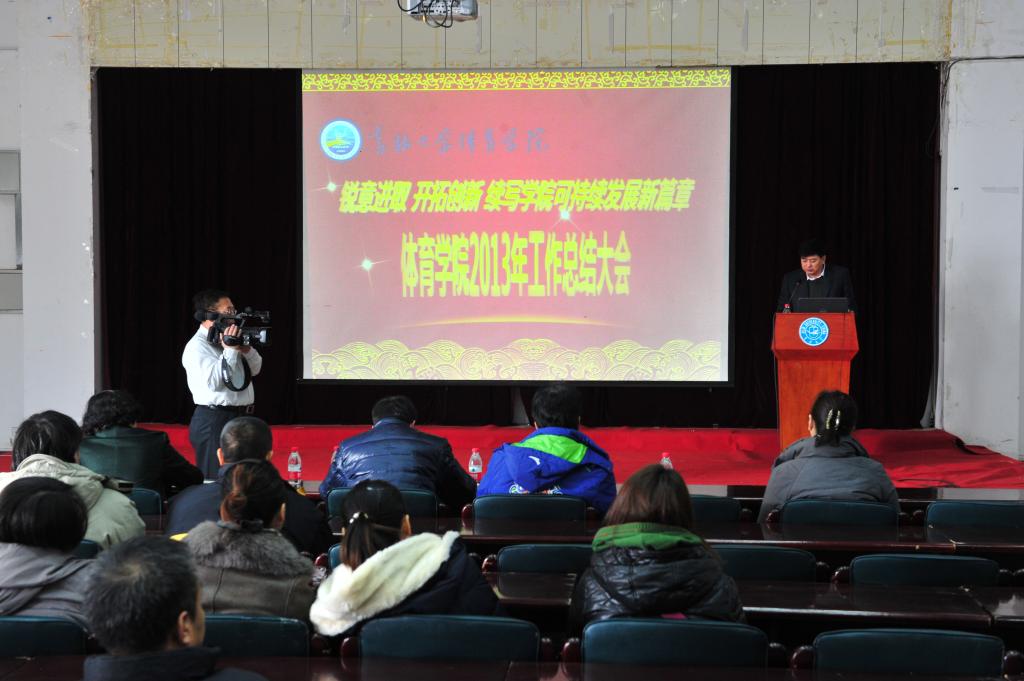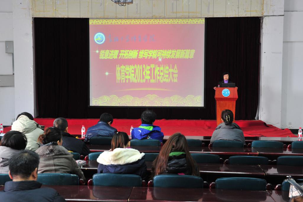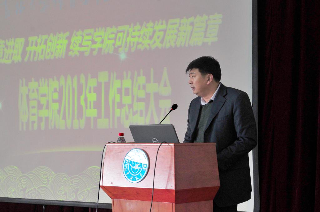 在总结大会上,院长袁雷教授做了2013年度工作总结报告。袁雷院长全面回顾了学院2013年的各项工作及所取得的成绩,他从学科建设、人才培养、科研工作、师资队伍建设、对外交流、群众体育以及竞技体育开展情况、财务工作等方面向学校领导和全院教职员工做了详细汇报,他深刻分析并明确指出了学院发展面临的问题和挑战,并要求全院师生充分认识当前学院存在的不足,时刻保持危机意识,艰苦奋斗。同时他对2014年的学院工作提出了要求和目标。