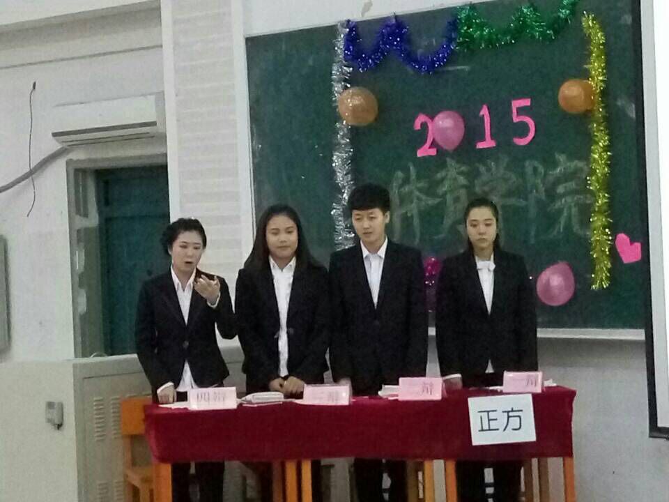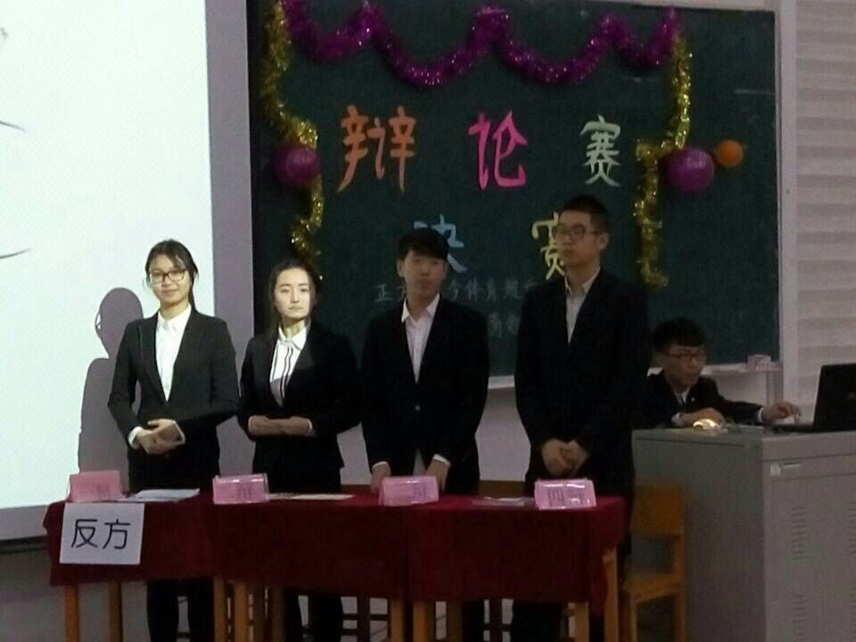 11月19号,由德赢winac米兰团委主办的“辩以明思,坐以论道”主题辩论赛决赛在经信教学楼第五阶梯教室隆重举行。德赢winac米兰党委副书记兼副院长吴哲老师、学生工作办公室主任王赫谊老师、团委副书记王锟老师、团委副书记韩旭、学生会主席李腾飞以及社联主席于小军担任了本次辩论赛的评委,2014级与2015级同学出席了本次比赛。