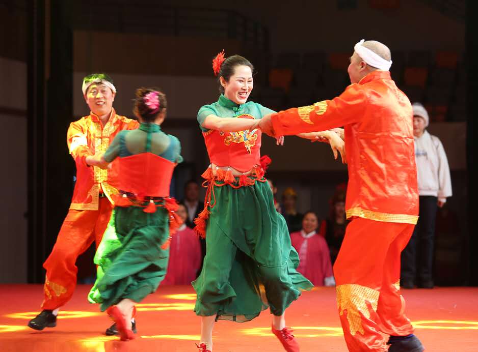 下午2时,迎新年联欢会以体院师生带来的舞蹈《张灯结彩》拉开帷幕,第一个节目是由杨挺、袁雷、裘鹏三届院长同部分本科生合唱《我和我的祖国》,将整个活动现场的气氛调动了起来;新民校区的歌舞诵《天路》,将歌、舞、乐结合在一起,美轮美奂;研究生带来的舞蹈《纸扇书生》,将古典美传达得淋漓尽致;西区带来的诗朗诵《盛世中国》,气势恢宏,令人难忘;南岭校区的舞蹈《共圆中国梦》,紧扣联欢会主题,呈现了中国梦的希冀;本科生的相声表演《新年愿望》,寓庄于谐,引来阵阵掌声;专业课教研室带来的舞蹈武术《爱我中华》,展示了中华武术的无穷魅力,博得台下喝彩无数。
