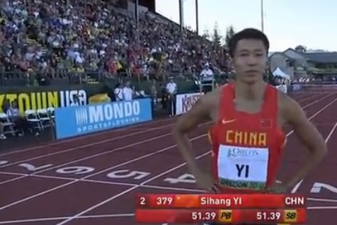 2014-08-02 Congratulations to Yi Sihangon Winning the Fifth Place in the 400m Hurdle of the IAAF World Youth Championship